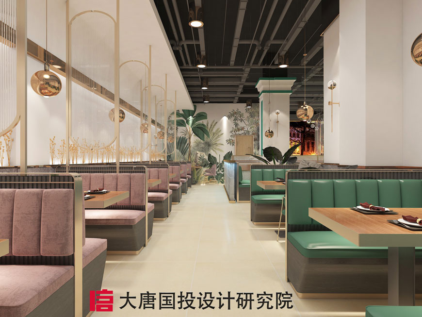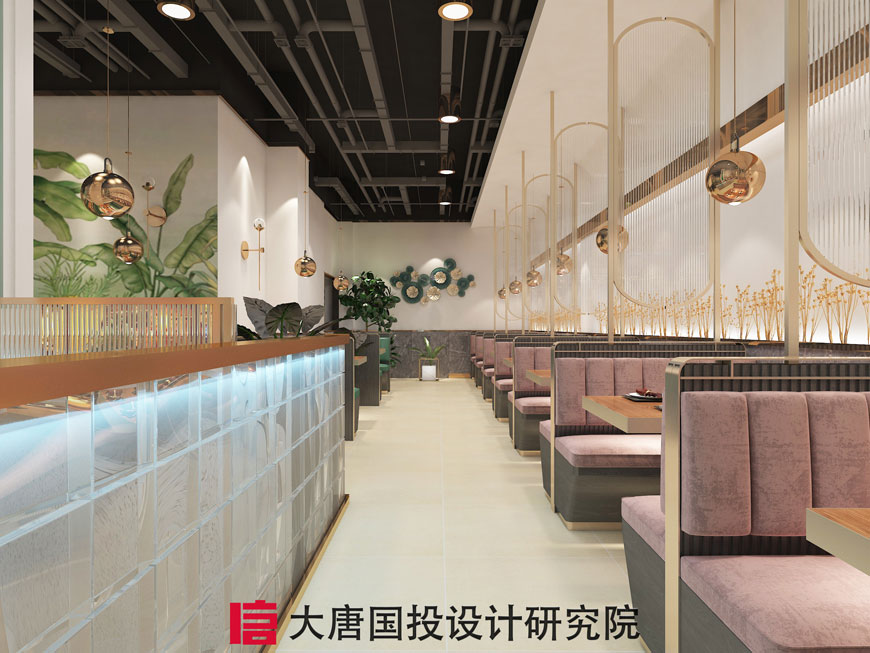 經典的白色打底,搭配粉色、綠色和不銹鋼讓整個空間充滿年輕的氣息,使許多人向往的輕奢風。綠植的點綴十分醒目,同時也給空間增添了不少活力。柔和的燈光照射下來,整個餐廳成為最佳的觀賞空間。